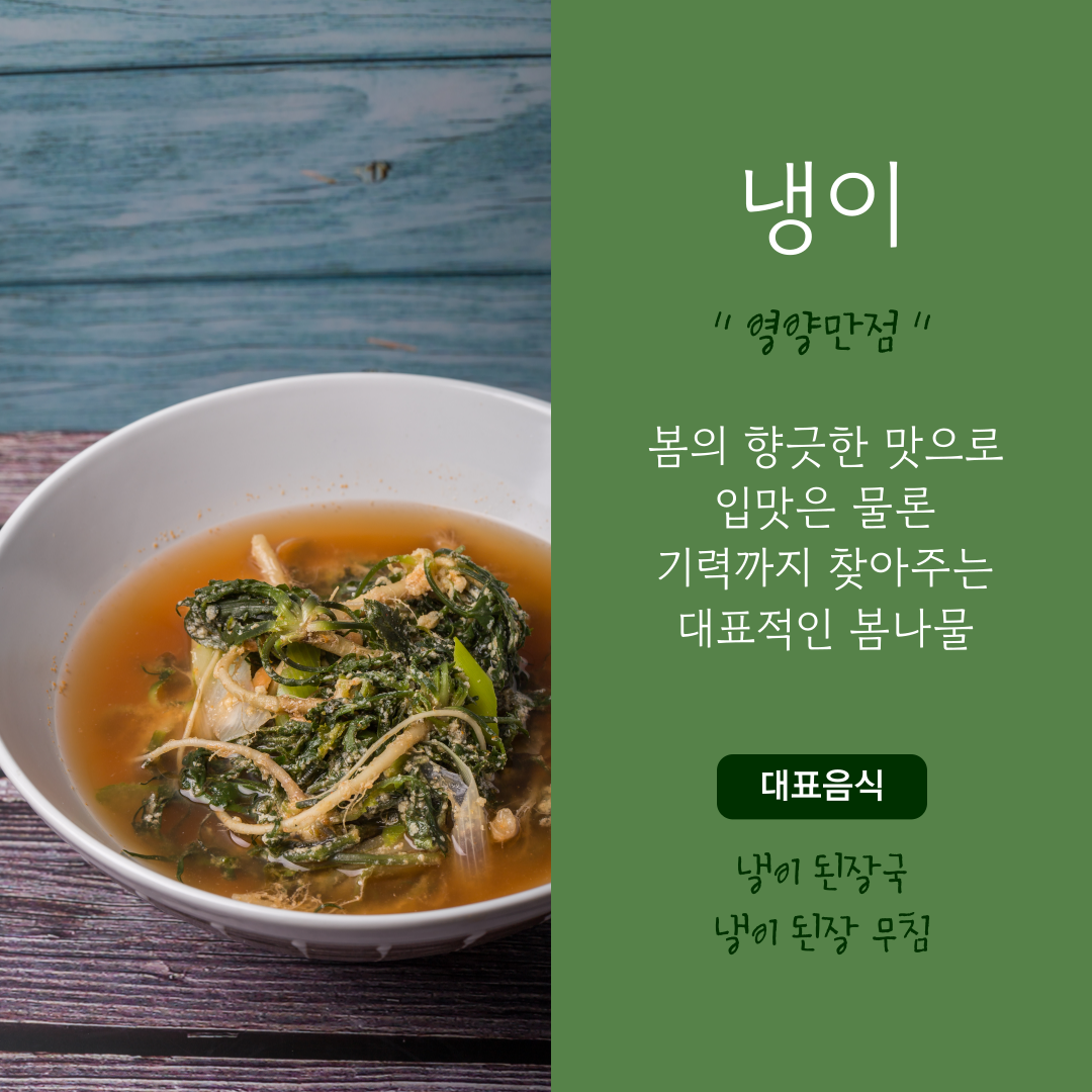 tip. 냉이를 육수에 넣기 전 된장에 버무려주면 골고루 맛이 베어 더 깊은 맛이 난다.