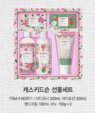 캐스키드슨은 이미 브랜드 자체로도 유명한 곳입니다. 포장도 리본까지 예쁘게 되어 있어서 주는 사람도 받는 사람도 좋을 거 같아요. 그리고 가격에 비해 선물 구성도 잘 되어 있어서 가격 대비 좋은 거 같습니다. 바디워시와 바디로션은 모두 300ml로 용량도 꽤 큽니다. 캐스키드슨 선물세트의 가격은 29,990원입니다. 3만원이라고 생각하면 되겠네요.