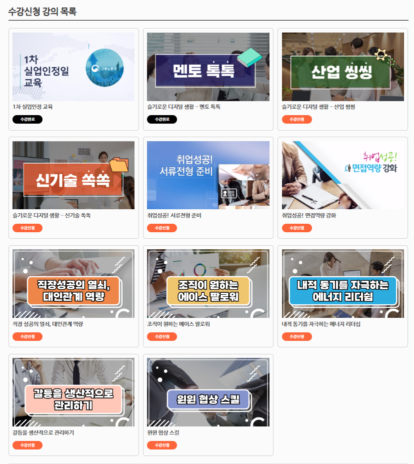 고용보험 실업급여 신청을 위한 온라인 취업특강은 프로그램을 수강할 수 있는 플랫폼이 따로 준비되어 있어 편리합니다.