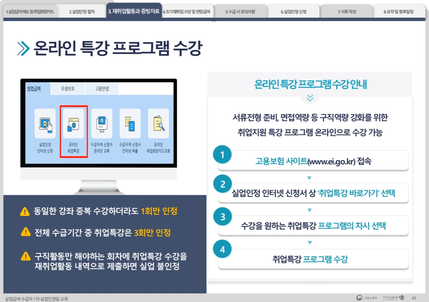 온라인 교육을 통한 구직활동은 총 3회로 횟수가 정해져 있습니다.