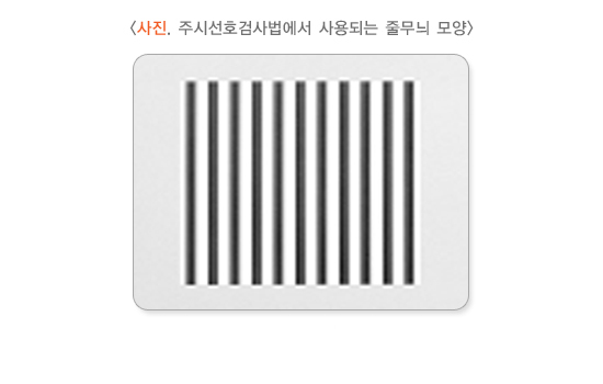 이 시력 검사는 영유아에게 균일한 자극과 줄무늬 모양의 패턴을 가지고 있는 자극을 주었을 때 줄무늬 모양의 자극을 선호한다는 사실을 이용한 검사법입니다.