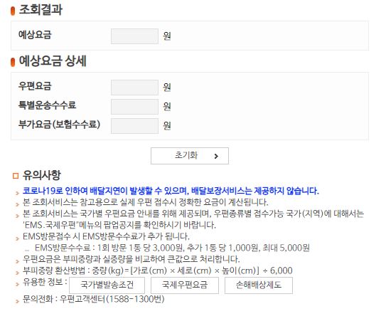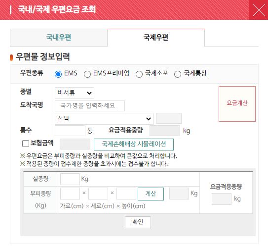 ▶'요금 계산기'로 국제우편 가격 조회하기