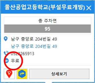 위에 보이는 이미지는 울산광역시 주차정보 안내시스템 화면을 그대로 캡쳐한 모습이에요.