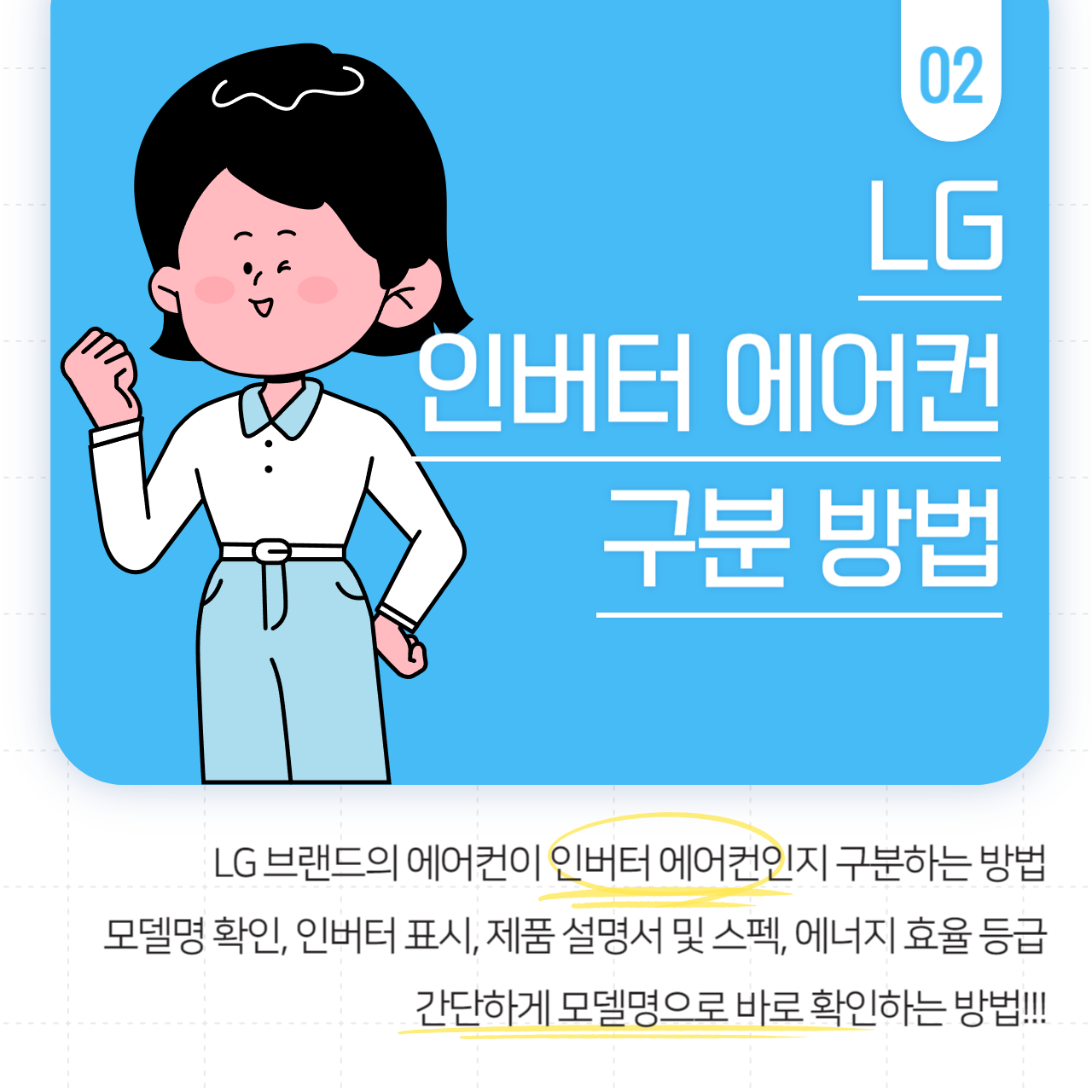 모델명 확인, '인버터'표시, 제품 설명서 및 스펙, 에너지 효율 등급, 판매처 문의로 구분할 수 있는데요.