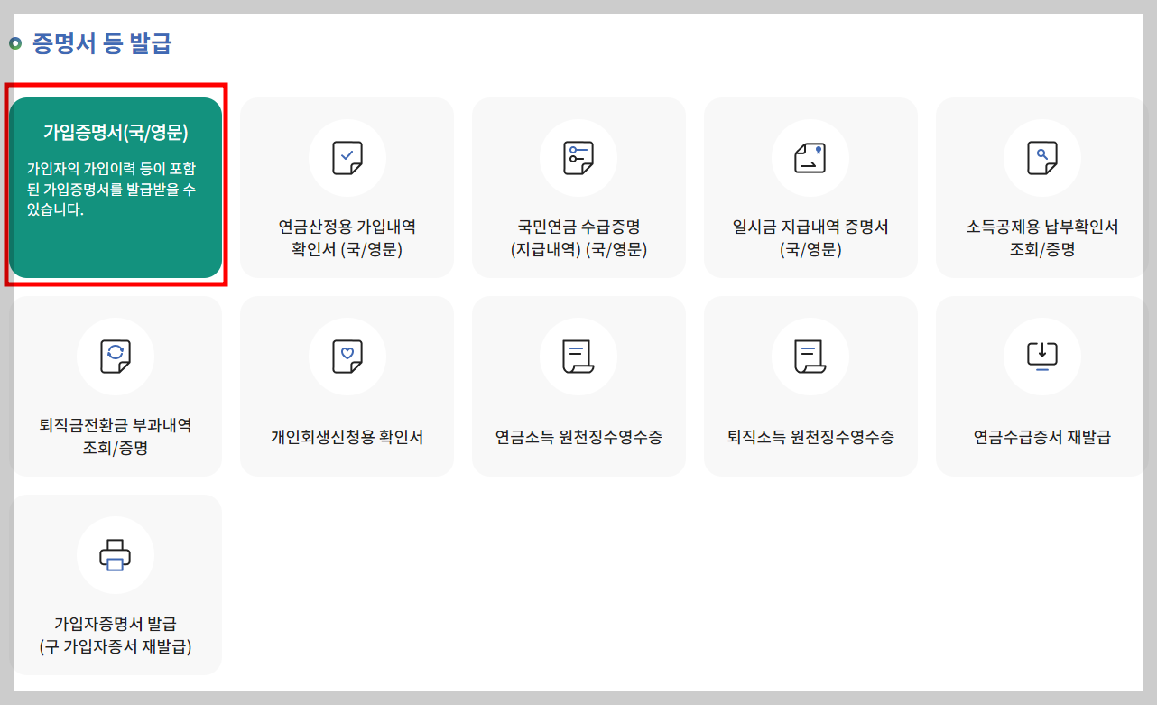 재직증명서 발급 방법은 국민연금공단(NPS) 홈페이지 접속 > 전자민원서비스 > 가입증명서 발급 > 개인 로그인 인증 > 증명서 등 발급 > 가입증명서 > 발급의 순서로 이루어집니다.