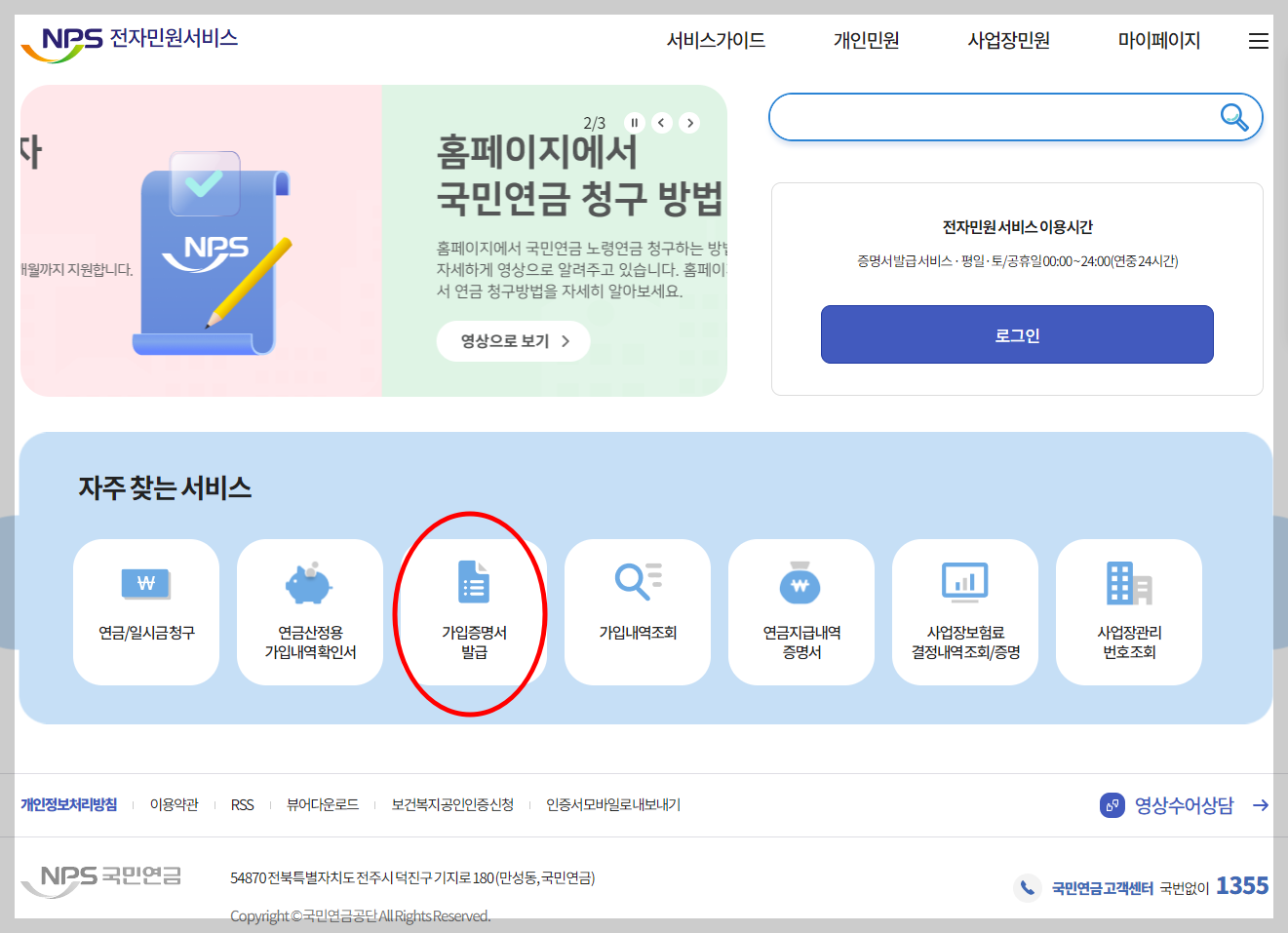 1. 국민연금공단(NPS) 홈페이지 접속
