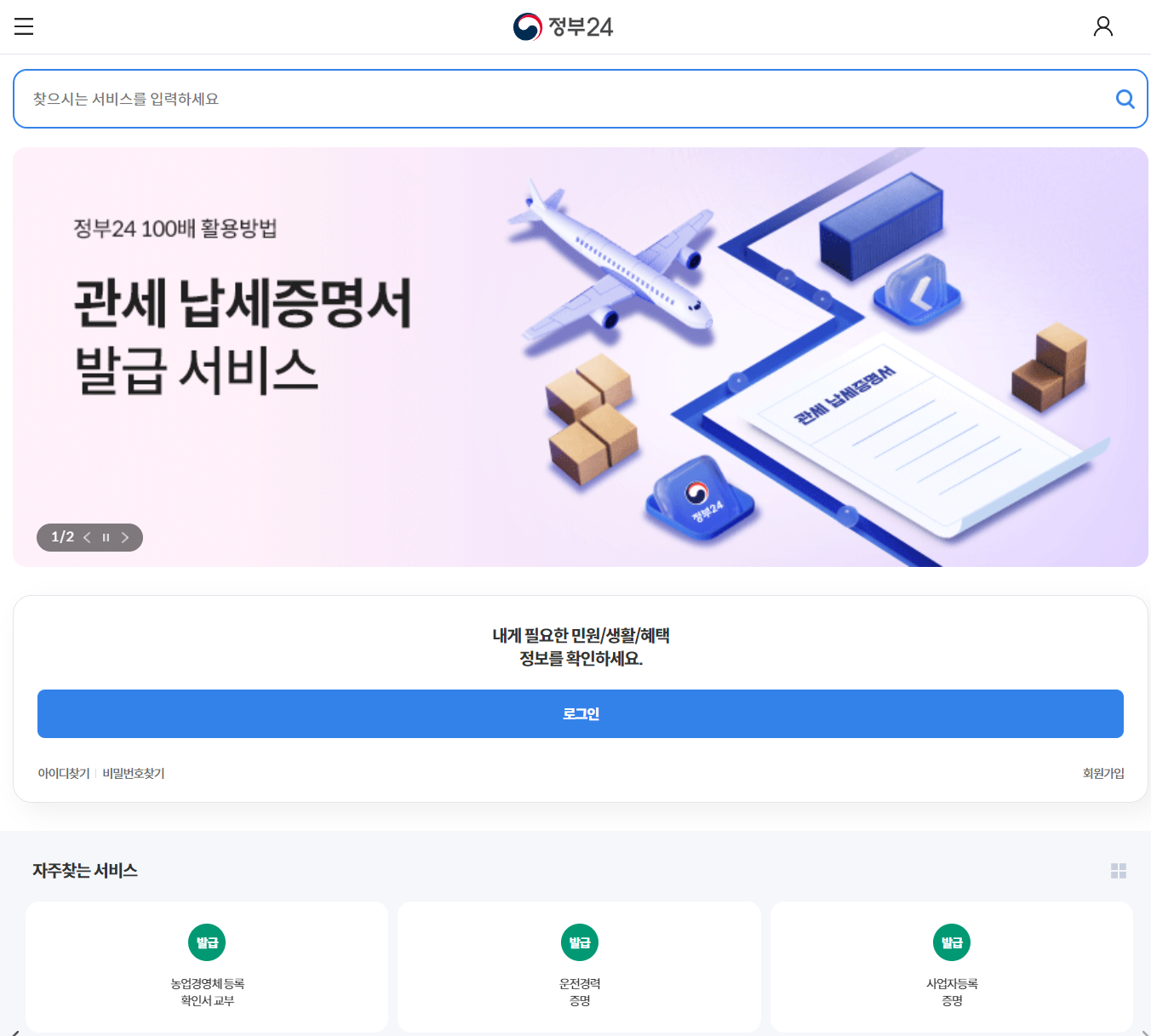 정부24(https://www.gov.kr)를 통한 재직증명서 발급방법은 아래와 같습니다.