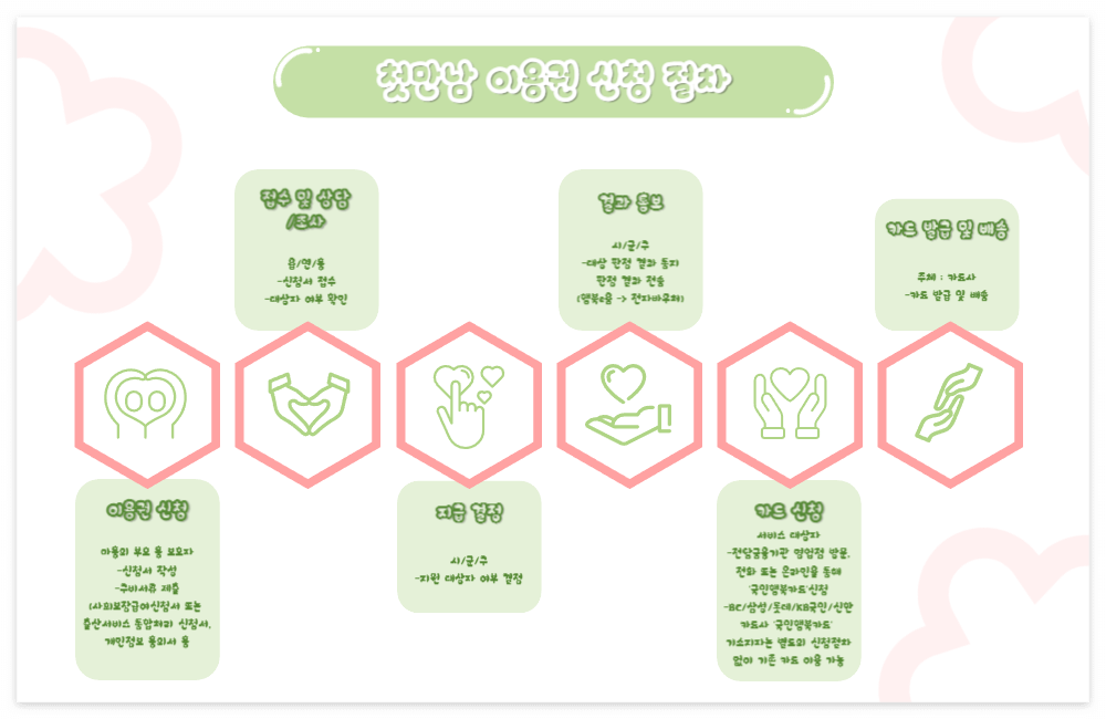 -신규 카드 발급일 경우에는 시군구청의 지급 결정이 있고 금융기관에서 카드발급되어 보호자가 사용 등록을 한 후 포인트가 생성된다는 점을 별도 사용 안내 필요(지자체, 정보원)