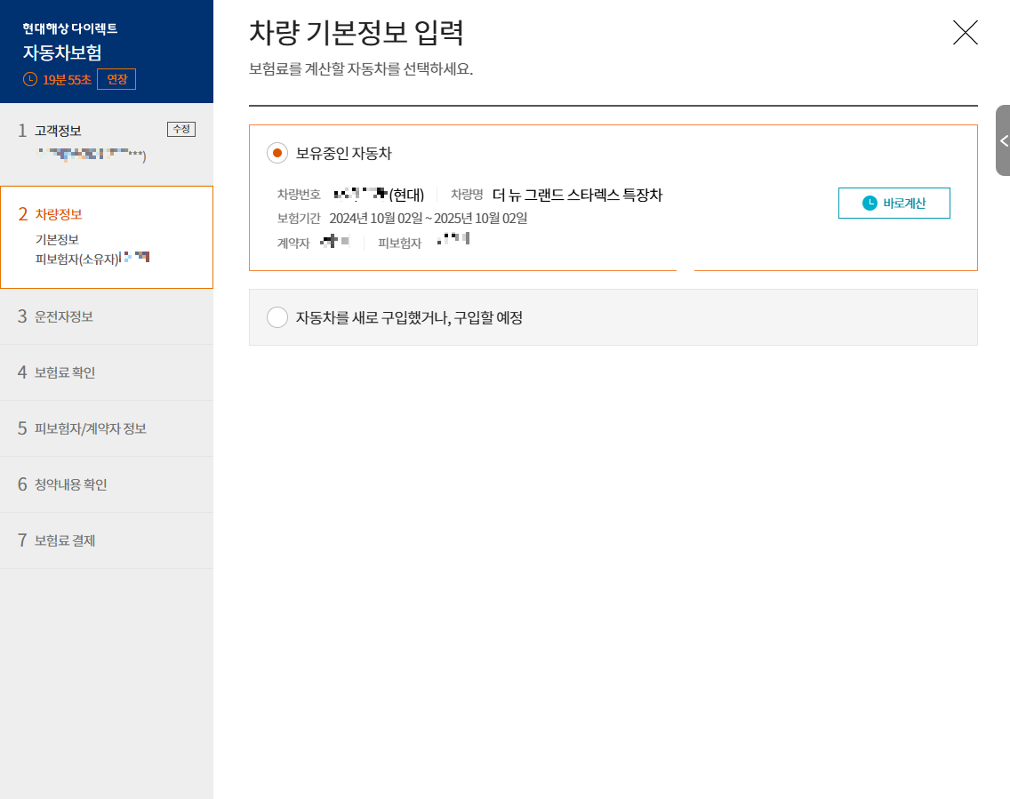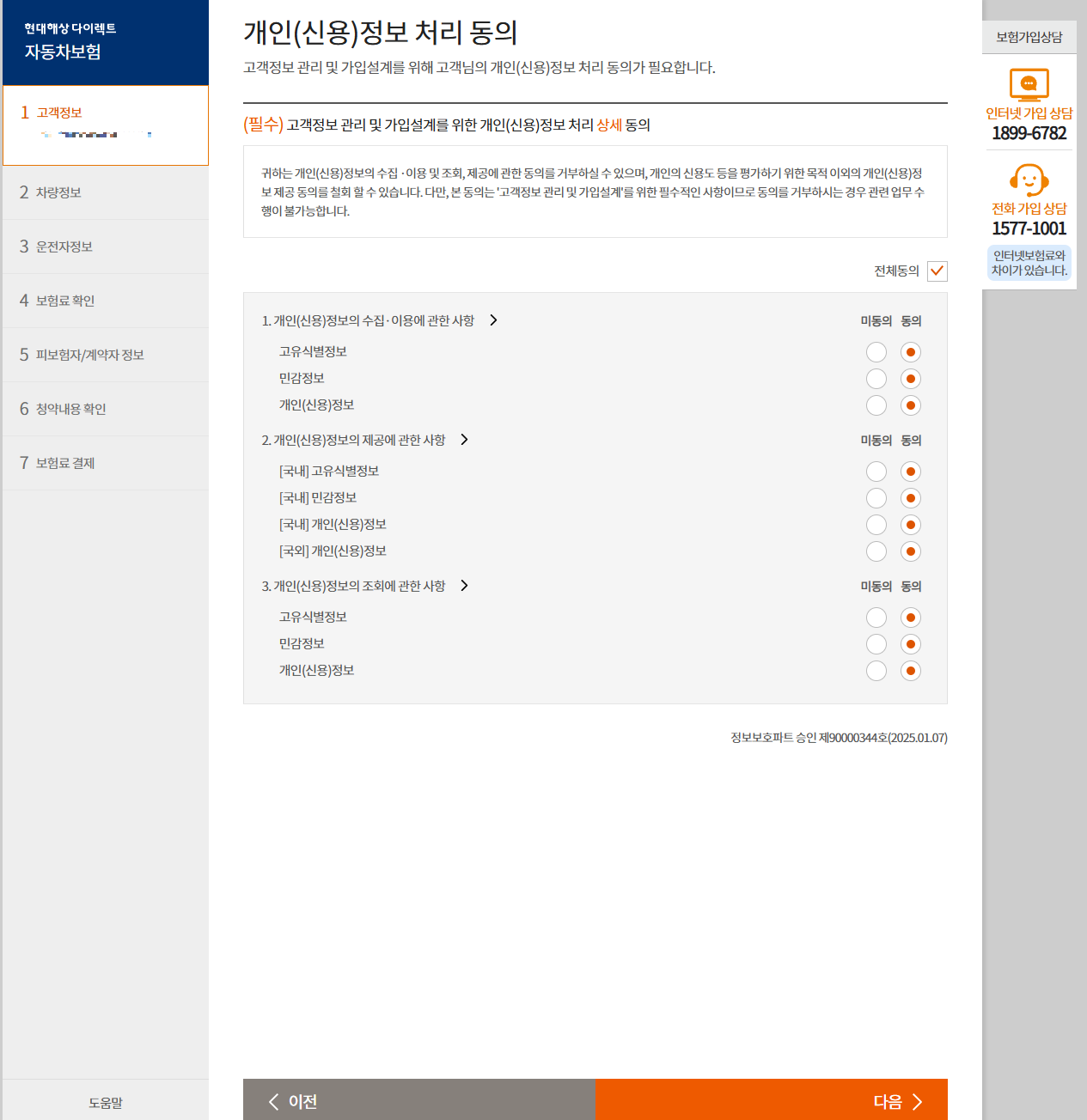 다이렉트 보험 시스템에서는 단계별로 선택지를 제공해 주기 때문에 큰 어려움 없이 진행할 수 있었어요.