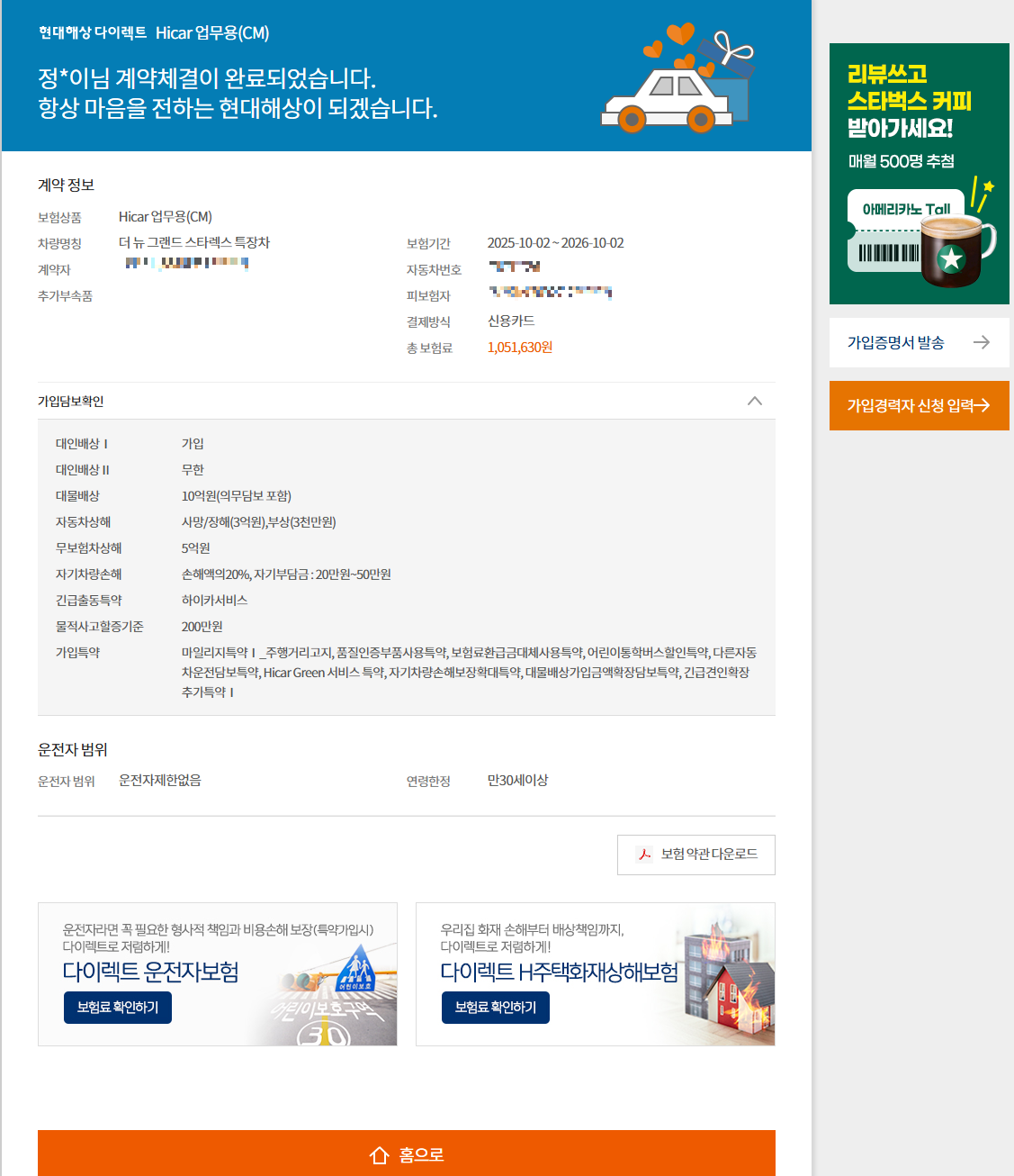 특히 업무용 차량은 기본 보험료가 높은 편이라, 이런 세부 혜택을 놓치지 않는 게 중요하다는 걸 다시 느꼈습니다.