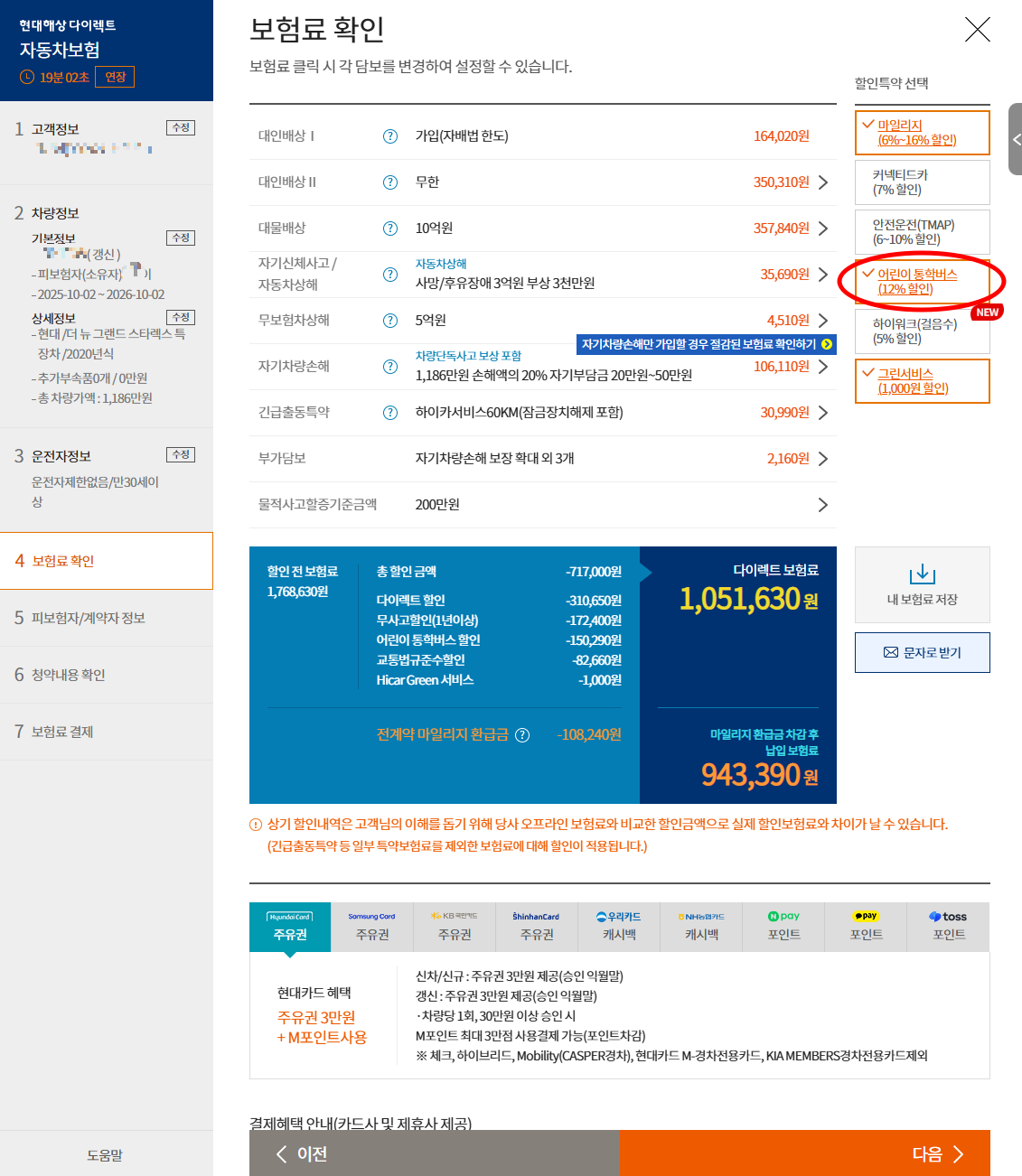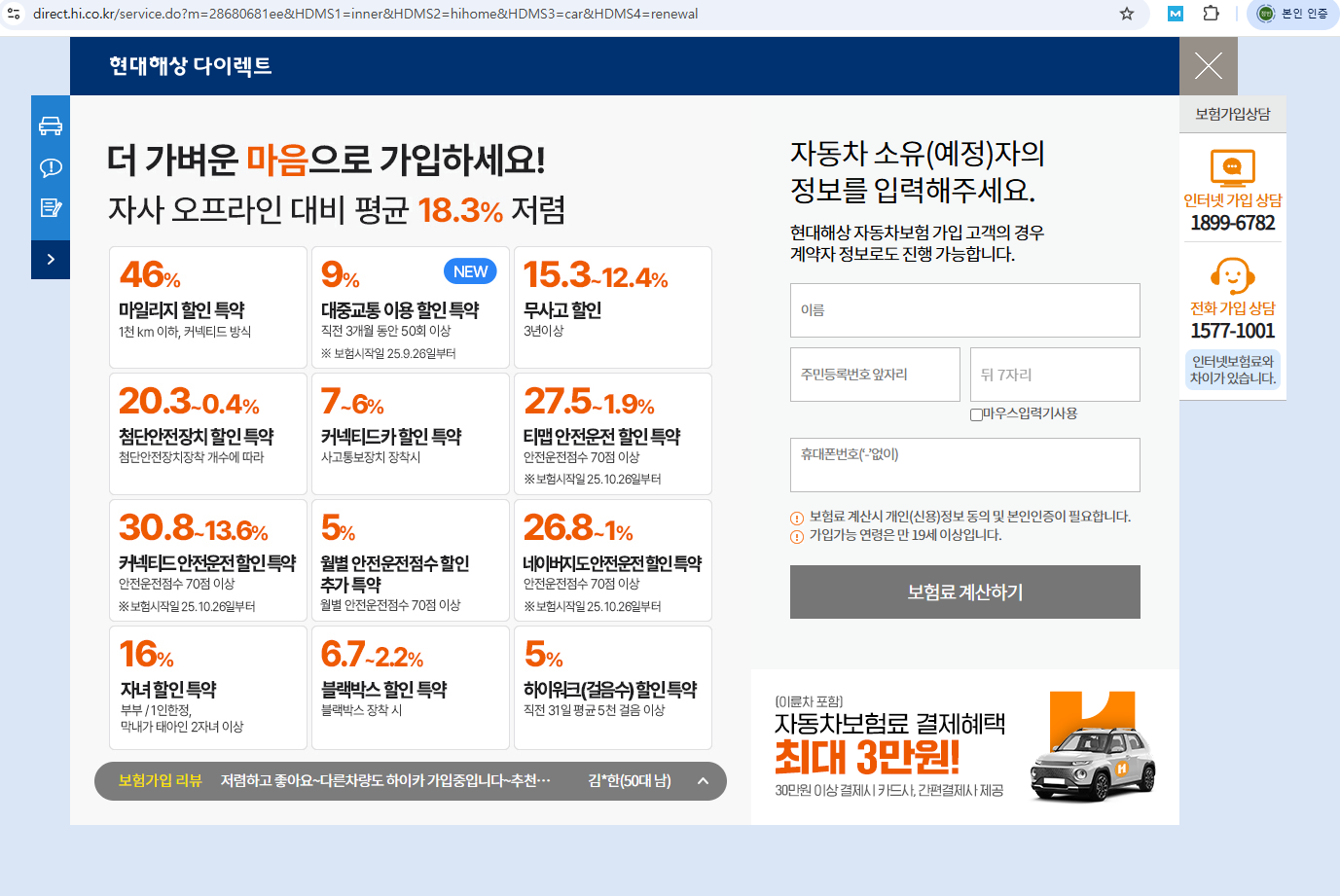 저는 현대해상 다이렉트 HiCar 업무용 자동차 보험으로 갱신을 진행했는데,