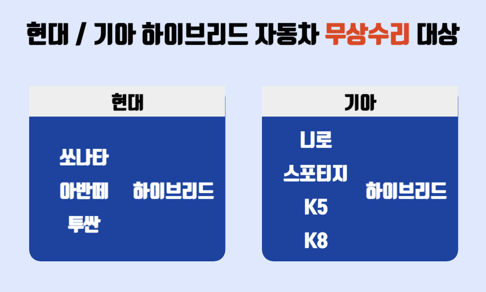 하이브리드 무상수리 대상자 조회 방법과 무상수리 기간, 해당 차종 등에 대해 알아보겠습니다.