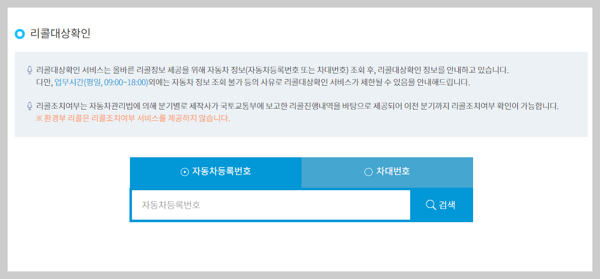 국토교통부에서 관리하는 자동차리콜센터에서 무상 수리 대상을 확인할 수 있으니 아래에서 바로 확인하세요!