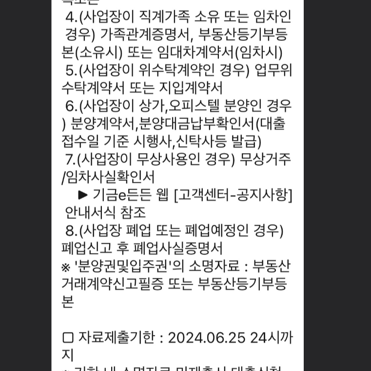 6. (사업장이 상가, 오피스텔 분양인 경우) 분양계약서, 분양대금납부확인서(대출 접수일 기준 시행사, 신탁사등 발급)