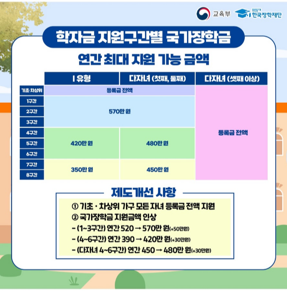 | 기초/차상위 | 등록금 전액 | 등록금 전액 | |