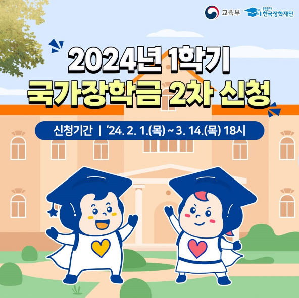 - 국가장학금 2차 신청 기간 : 24년 2월 1일 목요일 ~ 3월 14일 목요일 18시