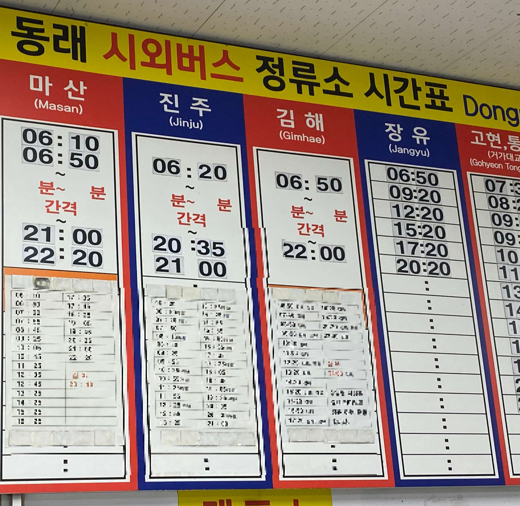 | 부산 동래 시외버스 정류소에서 창원, 마산, 남마산 가는 시간표 (1) | 2023.09.14 |