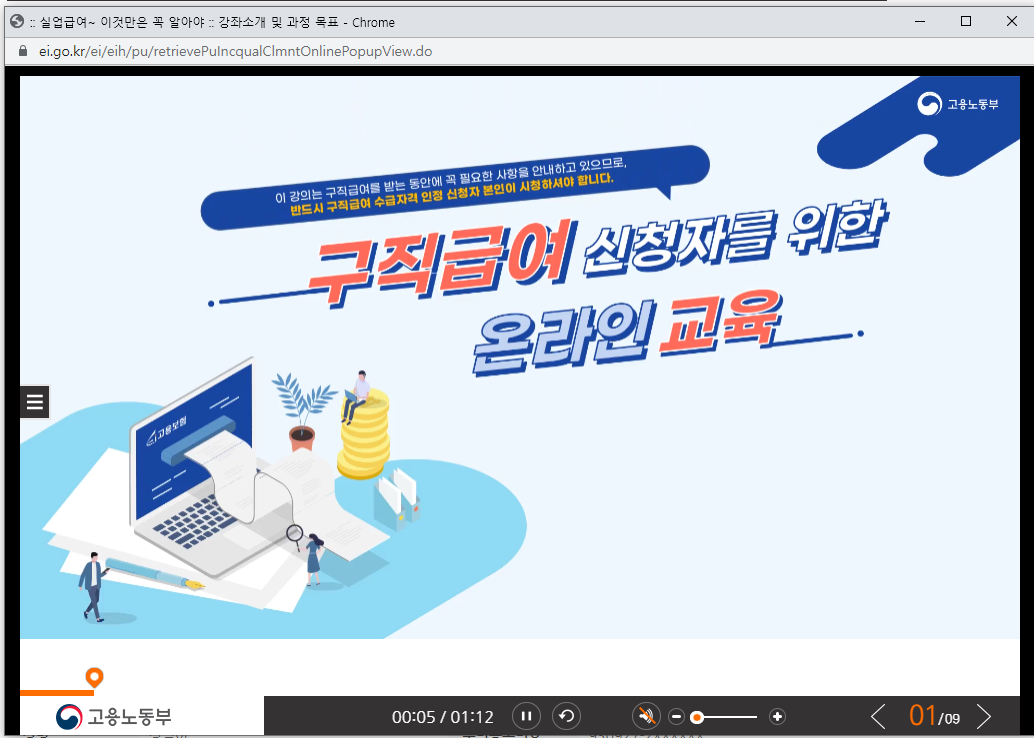 앞선 후기 1탄과 2탄을 모두 잘 따라오셨다면 거의 실업 급여 신청이 마무리되어 가고 있다고 말해도 과언이 아닙니다. 지금까지의 과정 중에서 가장 간단한 수급 자격 신청자 온라인 교육에 대해 알아보겠습니다.