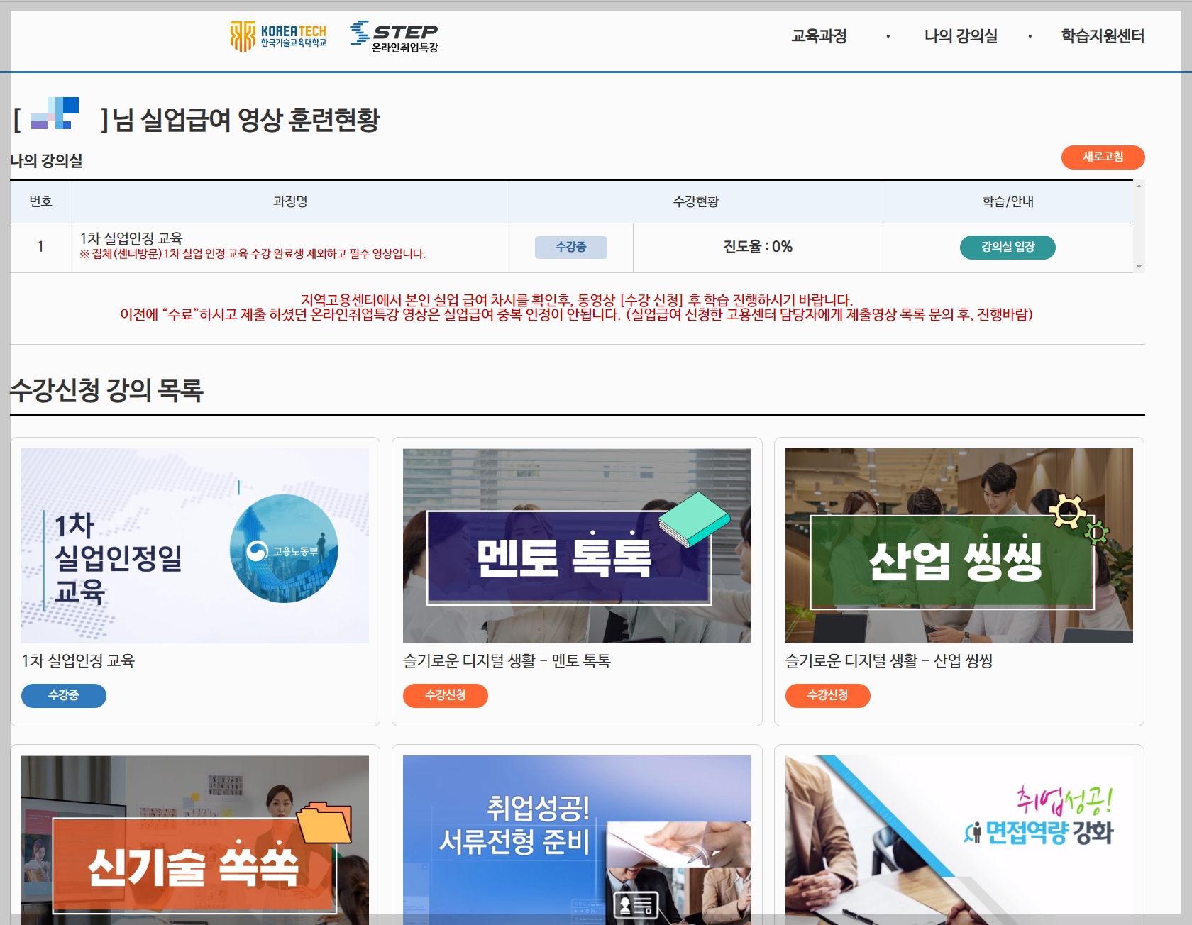 1차 실업인정 인터넷 교육 받기