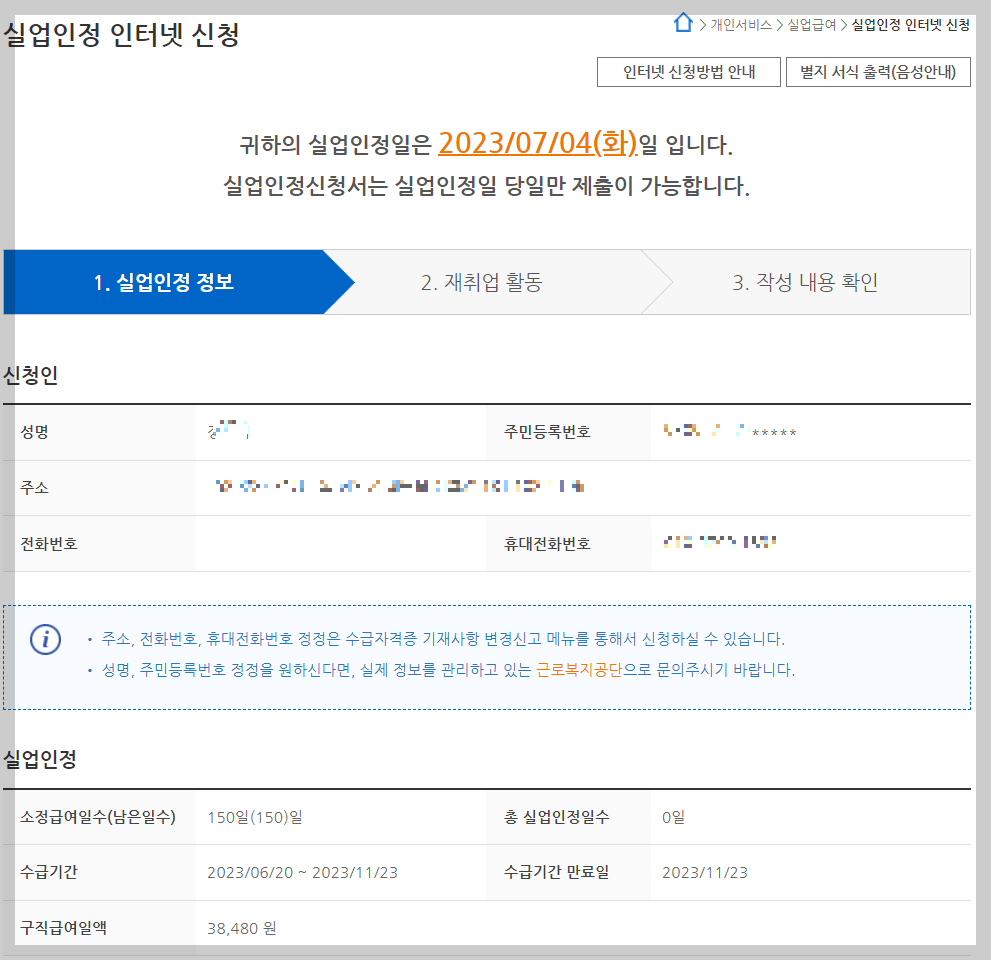 제출 후에는 자신의 실업급여 지급액을 정확히 알 수 있습니다. 그리고 다음 실업 인정일 또한 알 수 있습니다. 하지만 다음 실업인정일은 예정된 날짜로 변경될 수도 있다고 합니다.